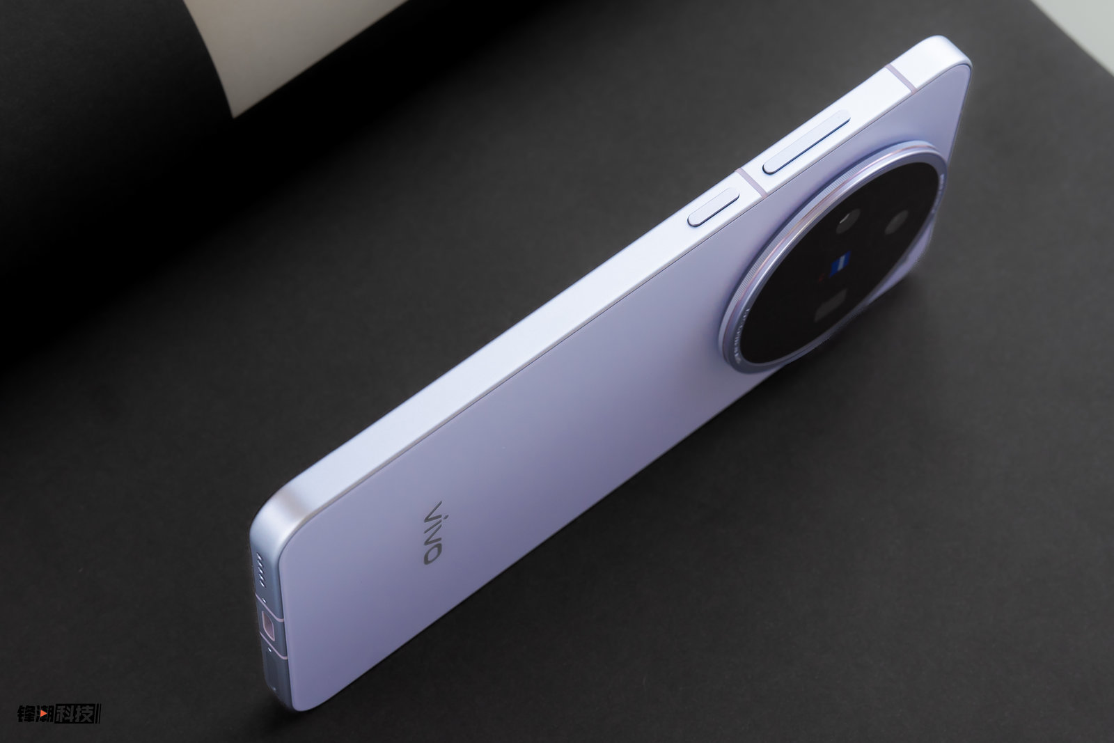 vivo X200s 一共有四款配色可选,除了经典的「直白」和「简黑」,还有「淡紫」和「薄荷蓝」两款清新配色。我们手上的「淡紫」色配合 AG 磨砂后盖,尽显高贵雅致。冷雕金属中框以及镜头装饰环都采用同色设计,整机一体感更强。