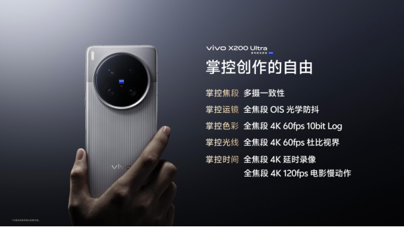 此次发布的X200 Ultra,视频录制能力同样是一大亮点。全焦段4K 60fps 10bit Log视频的超广角动态范围和画质大幅度提升,支持709色彩监看和14EV的动态范围,为视频创作者带来了更大的后期空间,配合官网提供的还原LUTs,能够在各主流剪辑软件中对vivo Log进行精准的色彩转换,实现更好地与专业设备的协同拍摄及调色匹配。超广角录制规格的提升,让4K 120fps不再是主摄和长焦的特权,不论远近,只要想记录高速运动的画面、延长转瞬即逝的精彩时刻,都可以通过全焦段4K 120fps电影慢动作轻松实现。X200 Ultra还攻克下了移动视频影像中的又一个超级场景,带来全焦段4K延时摄影,实现“日转星空”的摄影技术平权。