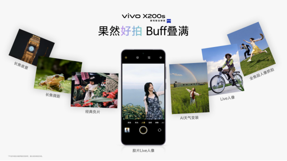 针对年轻用户对氛围感的需求,X200s新增了经典负片风格,完美复刻了胶片相机的色彩科学。胶片Live人像支持人像模式,风格玩法更多样,其中,负片风格提供“动态美颜+负片效果”叠加功能,让会“说话”的照片,有趣更有生命力。同时,人像模式升级抓拍算法,全焦段运动人像提供给用户更好的零延时、追焦定格、运动虚化的效果。