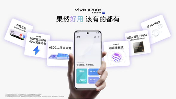 此外,X200s还以全面无短板的体验,实现性能、续航、AI等全维度的进化。X200s搭载天玑9400+,第二代全大核设计让能效比显著提升;6200mAh大电池搭配90W有线闪充与40W无线闪充,采用直驱供电,带来强劲续航表现;黑科技冰脉流体VC散热、四芯信号增强技术等,让散热与信号能力显著增强。另外,X200s的湿手秒开超声波指纹支持微米级3D识别,湿手、汗手,解锁更快更稳。AI防诈盾牌功能通过端侧大模型,可以帮用户识别诈骗风险并弹窗提醒用户注意保护个人信息和财产安全。