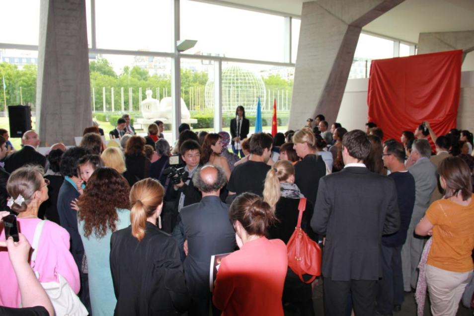 ▲ 联合国教科文组织法国巴黎总部首次收藏中国当代艺术家作品仪式现场(江衡致辞)
