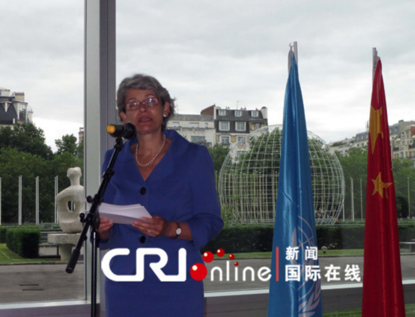▲ 联合国教科文组织总干事伊琳娜·博科娃在江衡的收藏仪式上发言(来源:国际在线)