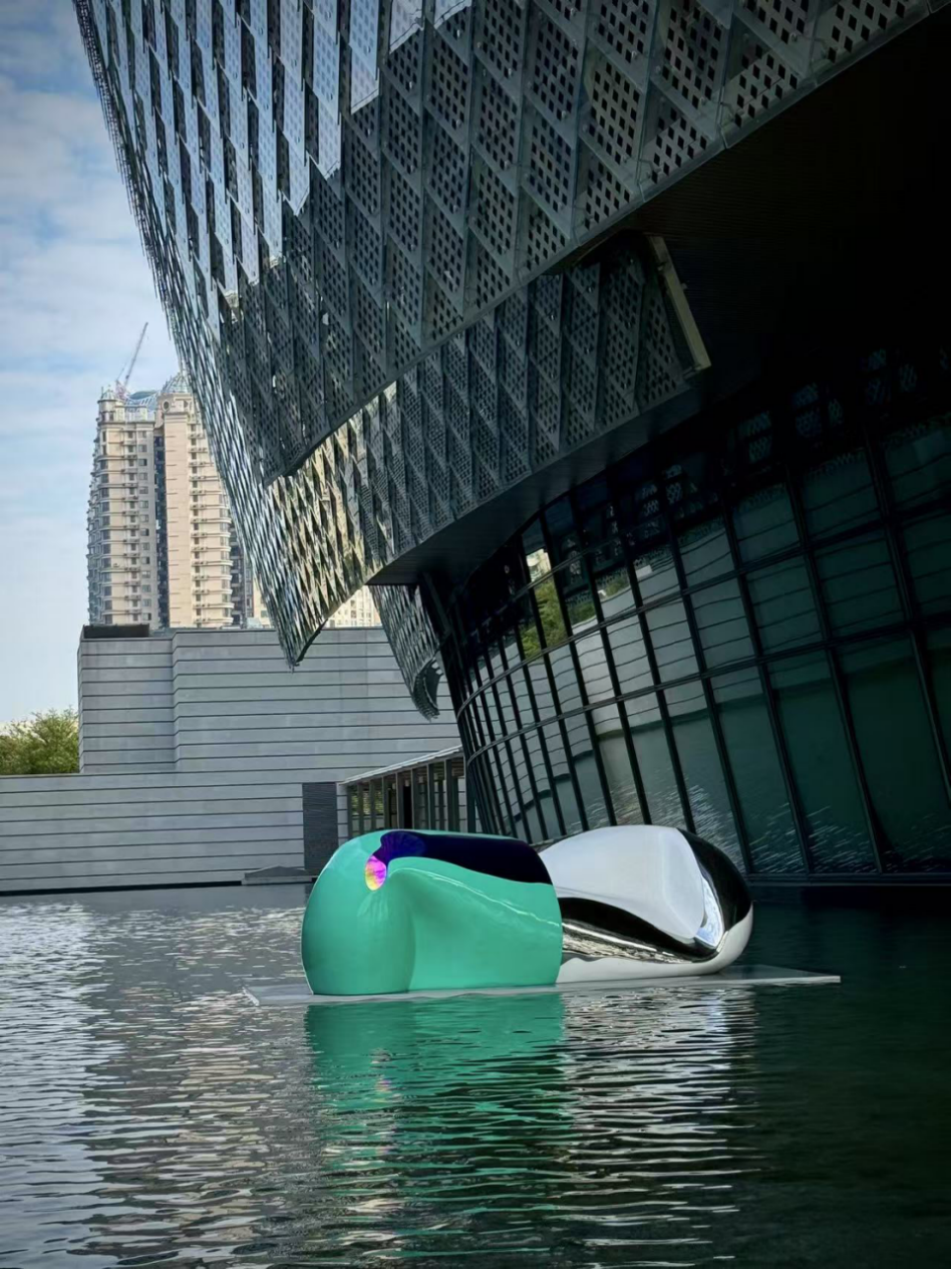 ▲ 《“你”是我的身体NO.5》280x128x108cm 不锈钢镜面 电镀玻璃钢2001-2018年江衡