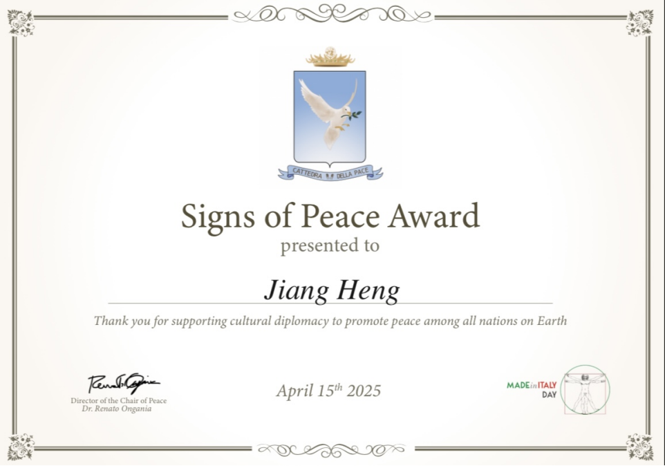 2025年4月15日,2025年意大利国家“和平标志奖”颁发。
