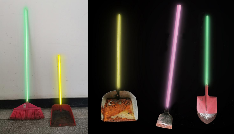 ▲ 《物语NO.2》2007-2017年 生活用品、老铁器、各种颜色的灯管(28支) 尺寸不等 江衡