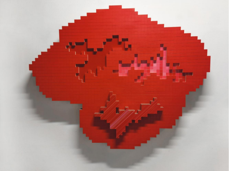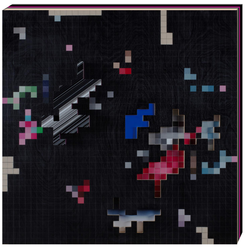 ▲ 《我把身体分成像素碎片分给你NO.12》80x80x8cm 进口木板10层 丙烯 铅笔 油画布 2023年 江衡