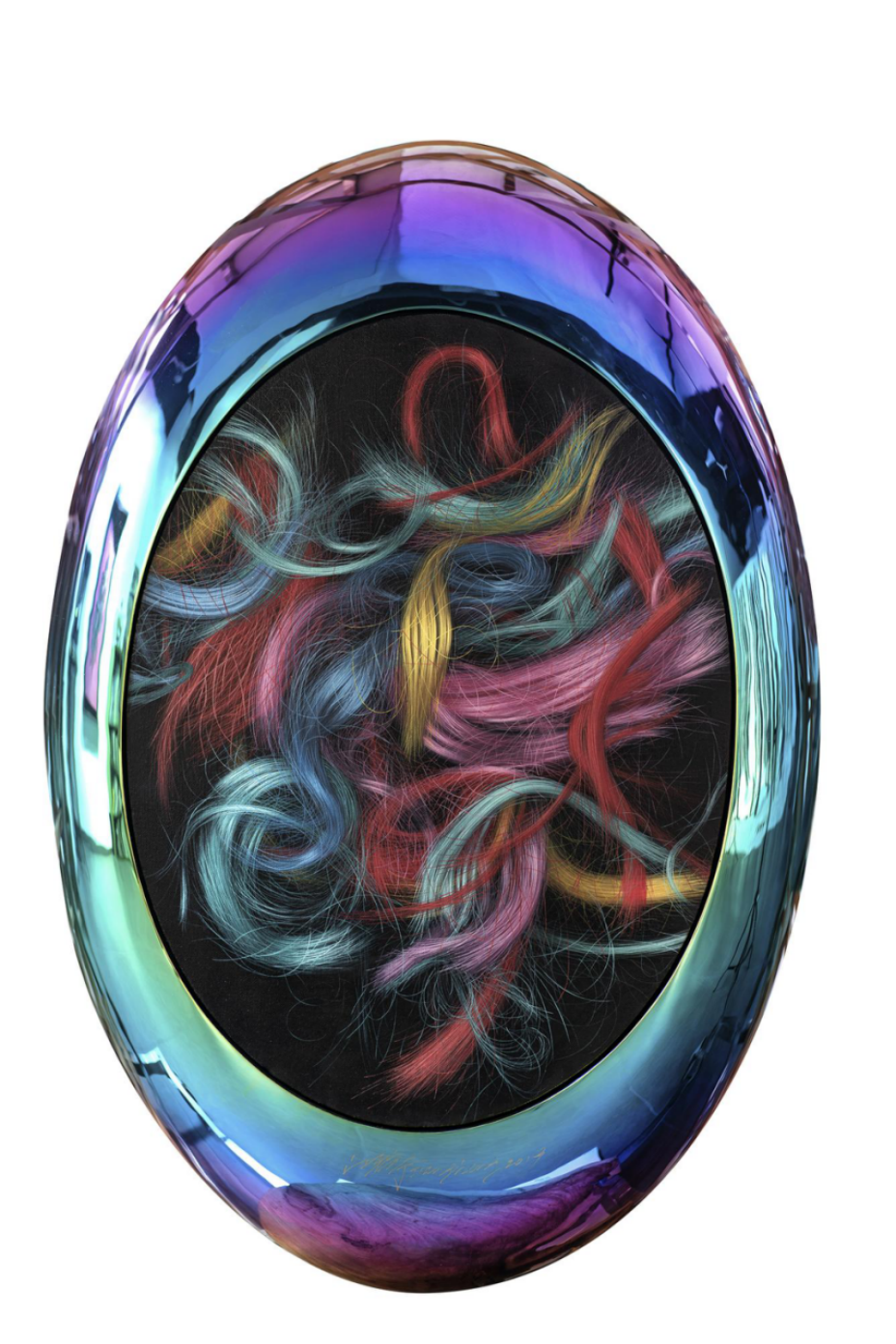▲ 《谜NO.8》120X100CM 布上油画 电镀不锈钢 2019年 江衡
