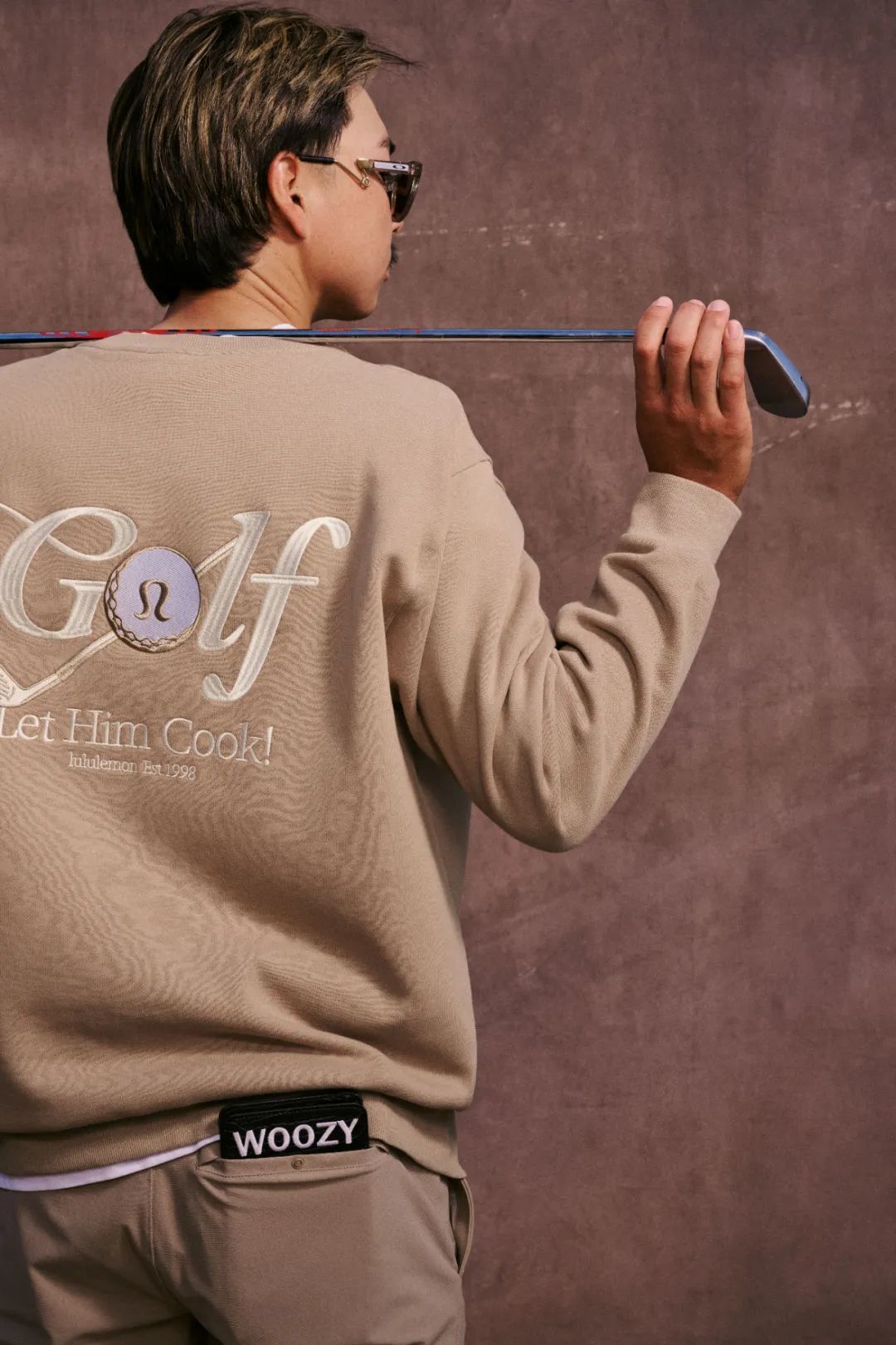 lululemon另一位大使李旻宇还上身过另一款特别的运动衫。在它背面大大的花字的「Golf」字样下,还印着「Let Him Cook!」