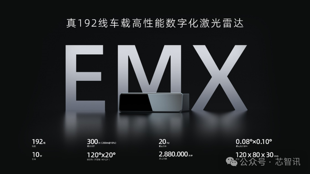 EMX搭载SPAD-SoC芯片与VCSEL芯片,检波灵敏度高,原始信息不丢失,更利于原始数据时空同步对齐,提升融合感知效果。得益于EM平台先进的数字化架构,EMX内部高度集成,以长120毫米、宽80毫米、高30毫米的尺寸,成为最小巧的车载数字化主激光雷达,支持高阶辅助驾驶系统进一步升级和普及。