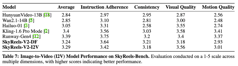在SkyReels-Bench的I2V多维度人工评测集下,SkyReels-V2在所有质量维度上均优于其他开源模型,并与闭源模型表现相当。