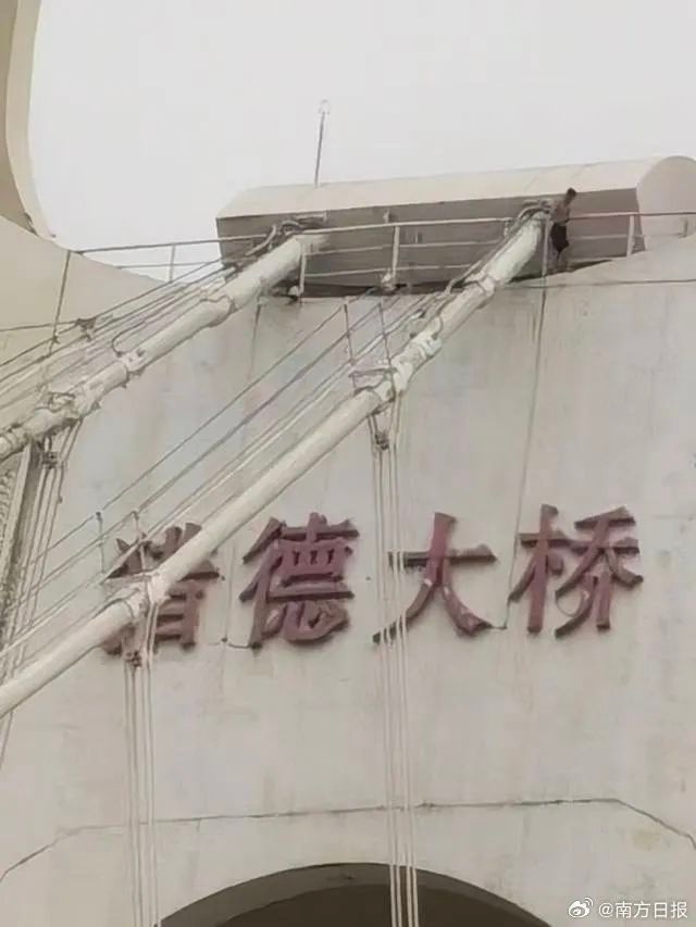 另据媒体报道,早高峰爬上猎德大桥顶部的男子,目前已下桥。