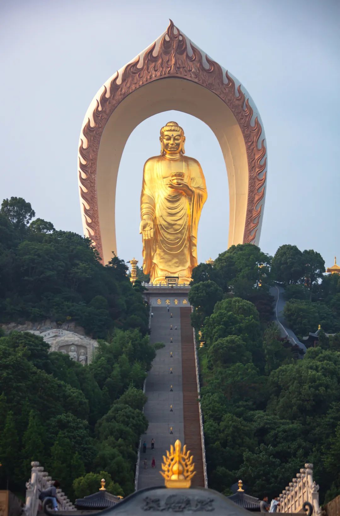 走过1000个台阶,全球最高的阿弥陀佛像巍然出现在你眼前。在这里,信众可以免费领取香火、书籍和结缘手串,还有免费的茶水供应。