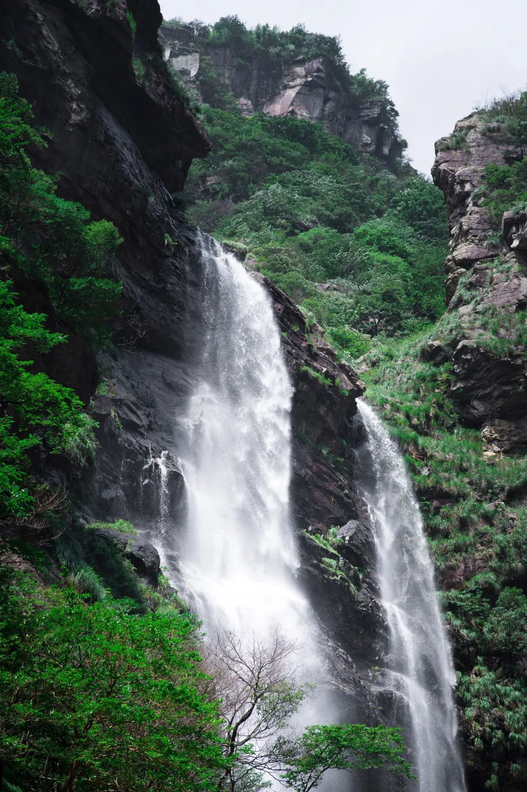 不必跑九寨沟,积雪化尽,春雨丰沛,五月的风一吹,庐山三叠泉的瀑布便成了液态的绿翡翠。