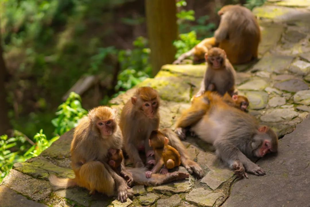 在仙人洞,大概率能邂逅庐山之上的野生猴群。小猴子们普遍比较乖巧,很少出现强抢食物的情况。