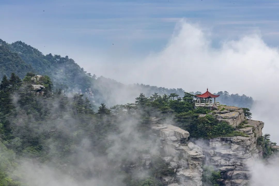 清晨登顶,云海翻涌如浪,远处的鄱阳湖若隐若现。这里是观日出的绝佳点位,运气好时,晨光穿透云层,天地宛如镀金。