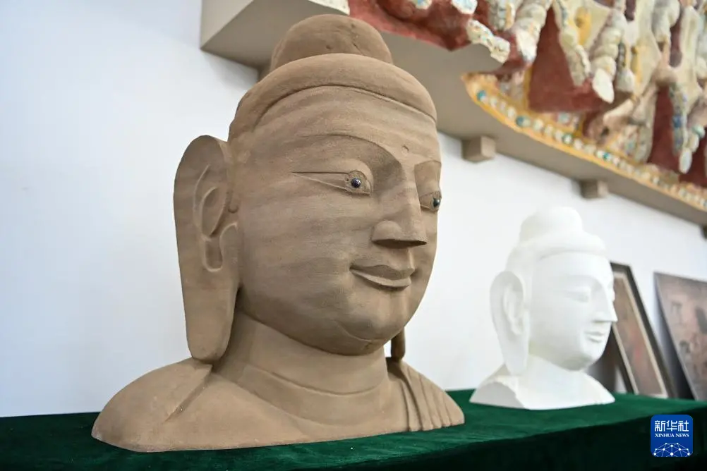 这是4月16日在云冈研究院数字化保护中心展厅拍摄的3D打印佛像模型。
