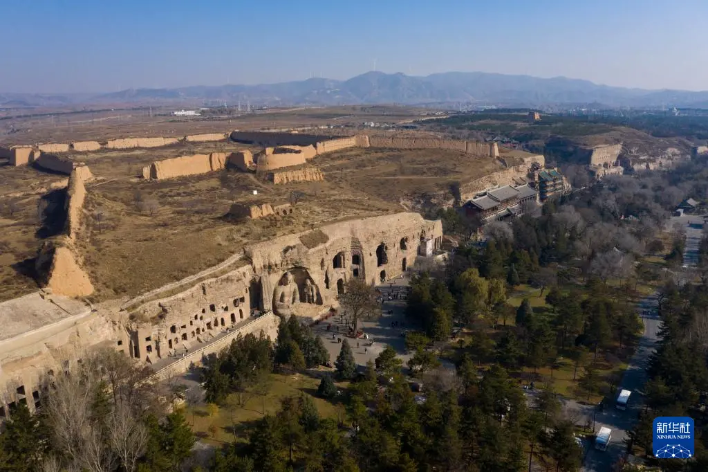 这是2024年11月7日拍摄的云冈石窟全景(无人机照片)。