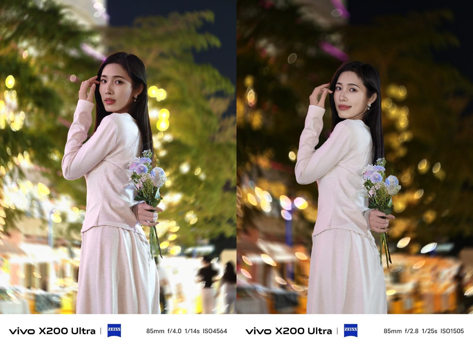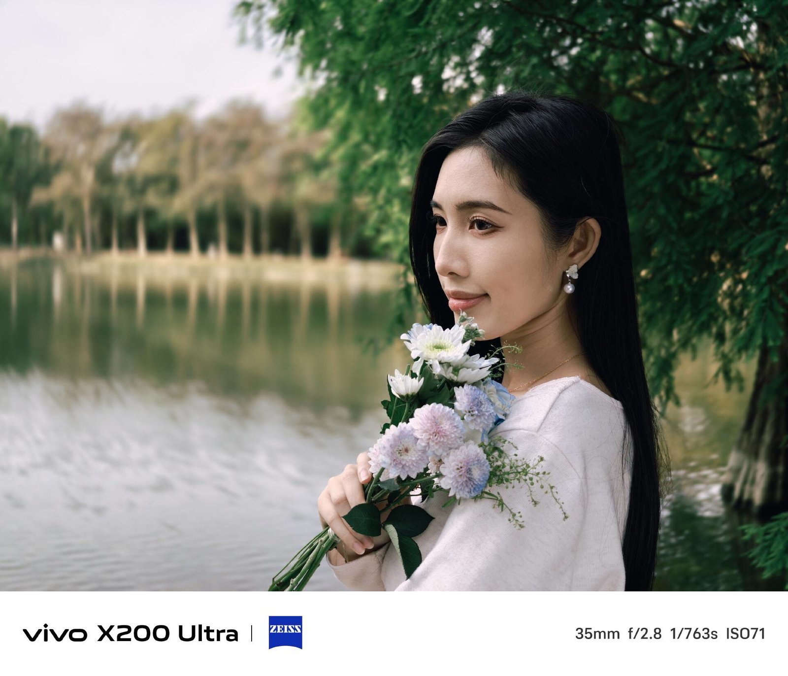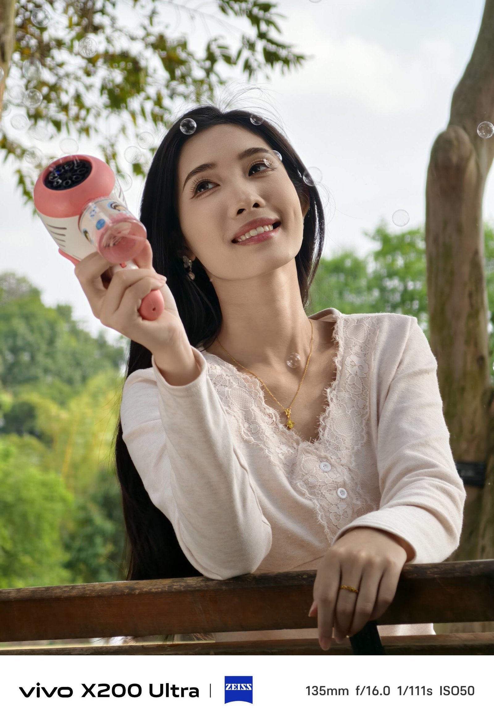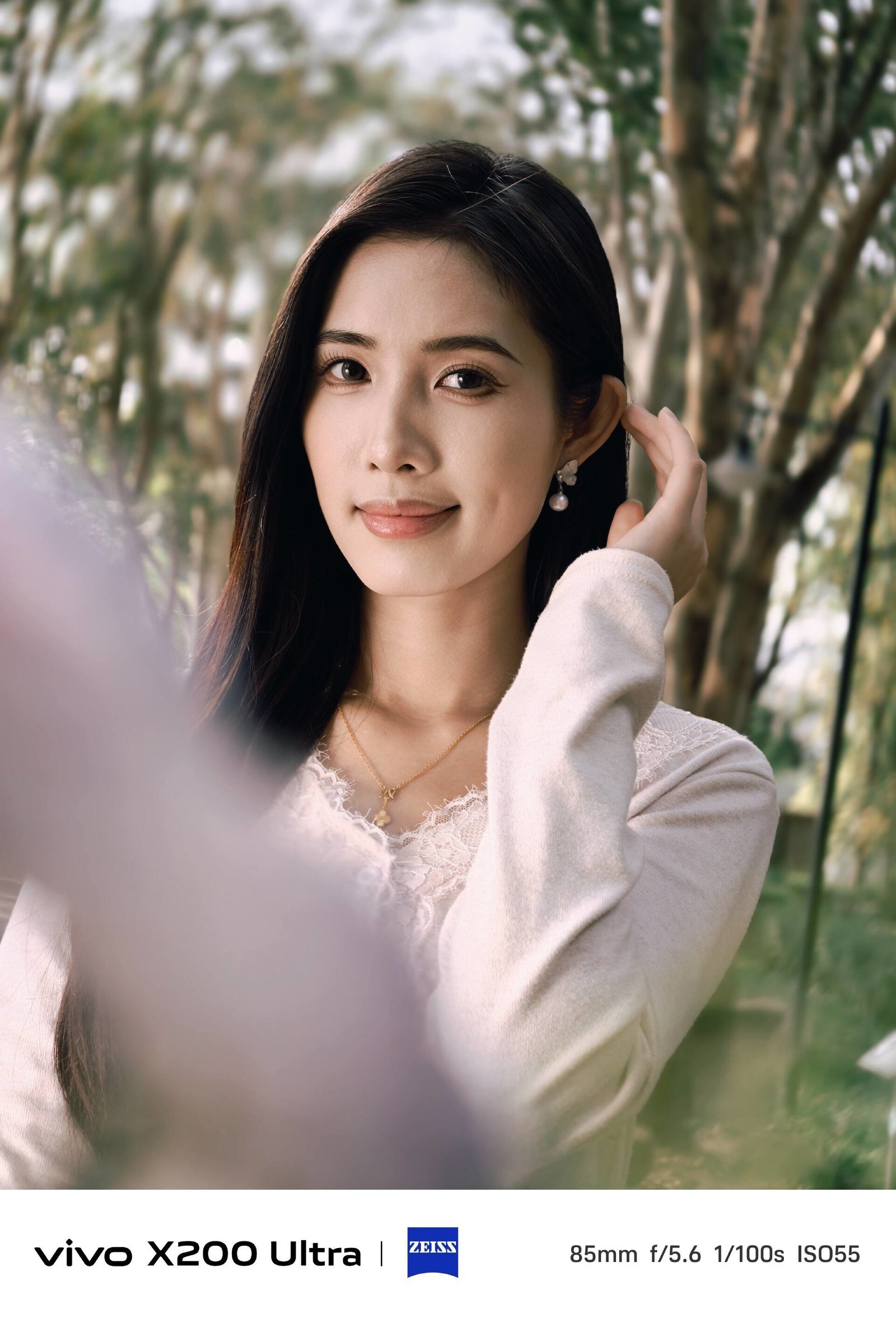 再来看看 vivo X200 Ultra 在人像拍摄方面的体验吧。此前的数代 vivo 影像旗舰都展现出了相当出色的人像拍摄体验,这次的超大杯竟然还能又一次进行升级,它的美颜算法进一步强化了肤质与光泽,让妆容看起来既精致又自然;背景的部分,它则是进一步优化了虚化的边界和效果,结合原本就物理虚化出色的三枚镜头,无论是小光圈的氛围感,还是大光圈的层次感,都能鲜明好看。