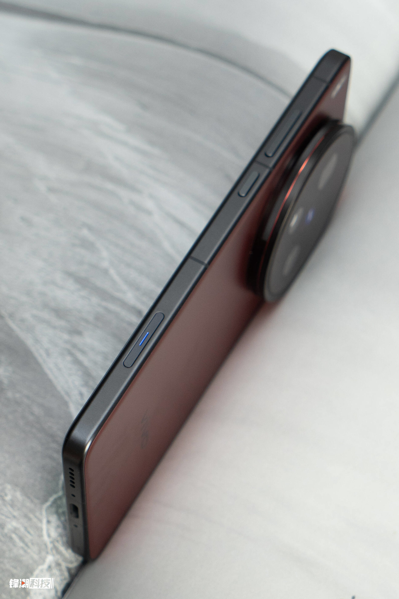 在中框方面,vivo X200 Ultra 也做了一些新的尝试,首先当然是中框的简洁化,它去掉了上一代 Ultra 在顶部和侧面的许多槽型与纹理设计,转变成了利落的直框。另外,机身的右侧也多了一个专精拍照的按键,一样放在了希望能兼顾横竖两向拍摄体验的位置,也一样是有电容感应的触控按键,能支持滑动调节曝光和变焦。