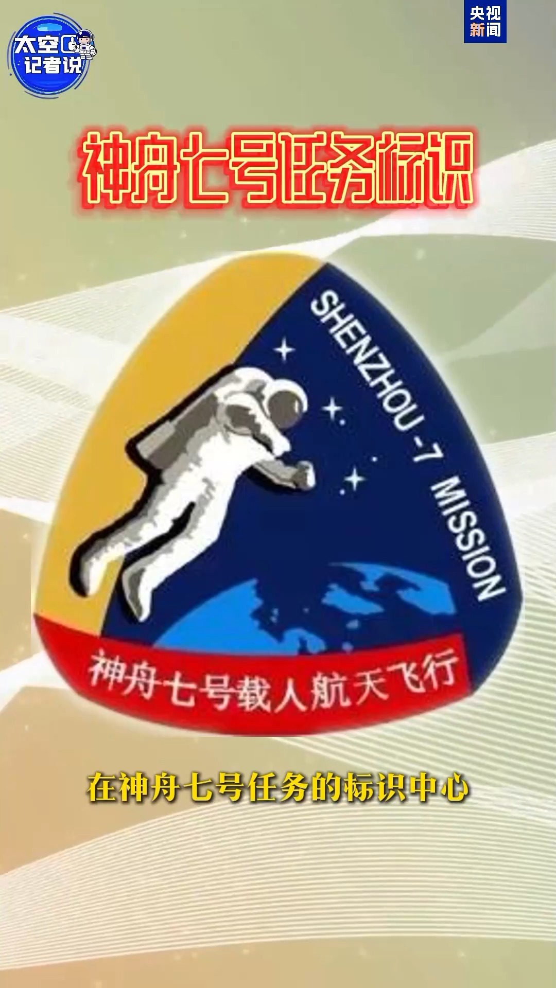 在神舟七号任务标识的中心,有太空行走的航天员形象,直接传达了这次任务的核心,定格了中国人首次太空行走的里程碑。
