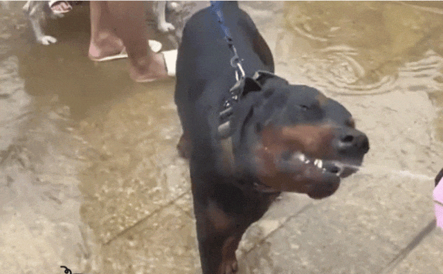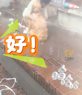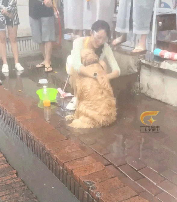 只见妹子瞬间原地蹲下,然后淡定的掏出了准备已久的沐浴液,就这样,水灵灵的原地给狗搓上了澡!