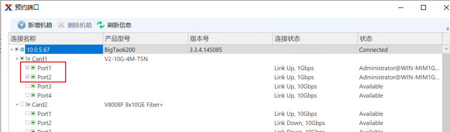 2.仪表根据网络拓扑图预约对应的端口,使端口上线;