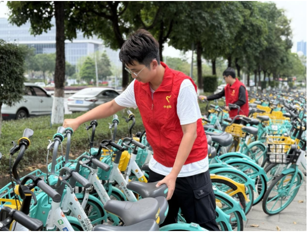 2025年4月22日, 为迎接第56个世界地球日,践行"我们的能源,我们的星球"主题,中建五局粤海项目项目党支部组织12名志愿者开展“规范共享单车停放+街道垃圾清理”环保志愿服务活动,以实际行动倡导绿色出行理念,美化城市环境。