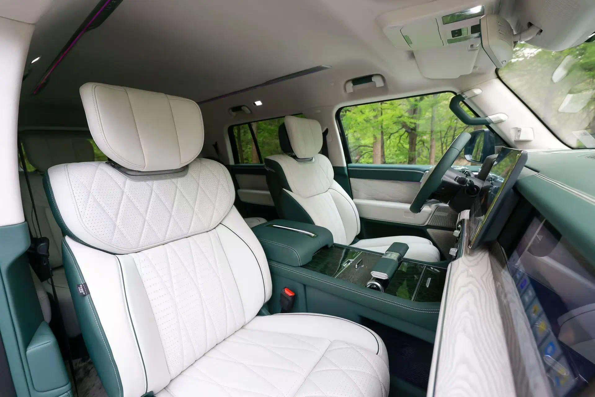 罗伦士M900星际战车的内饰设计以“空天文化”为灵感,巧妙融入“战机”“龙鳞”“天际”三大东方元素,唤醒国人内心的民族自豪感。座椅采用绗缝工艺,精准模拟战机机翼的流线造型;方向盘、换挡手柄等处的“龙鳞”纹路压花,采用进口头层小牛皮,既彰显尊贵气质,又确保出色的握持手感;门饰板、中控饰条、前后扶手箱饰板、冰箱饰板等部位运用古老而精湛的非遗螺钿工艺,选用深海贝,由经验丰富的匠人耗时3个多月,经30多道工序拼嵌并抛光至镜面,螺片可纤薄至0.08毫米,流光溢彩,散发东方艺术的独特魅力;1818颗LED组成的星空顶,搭配多种动效与星座呈现,营造出沉浸式宇宙遨游体验感。
