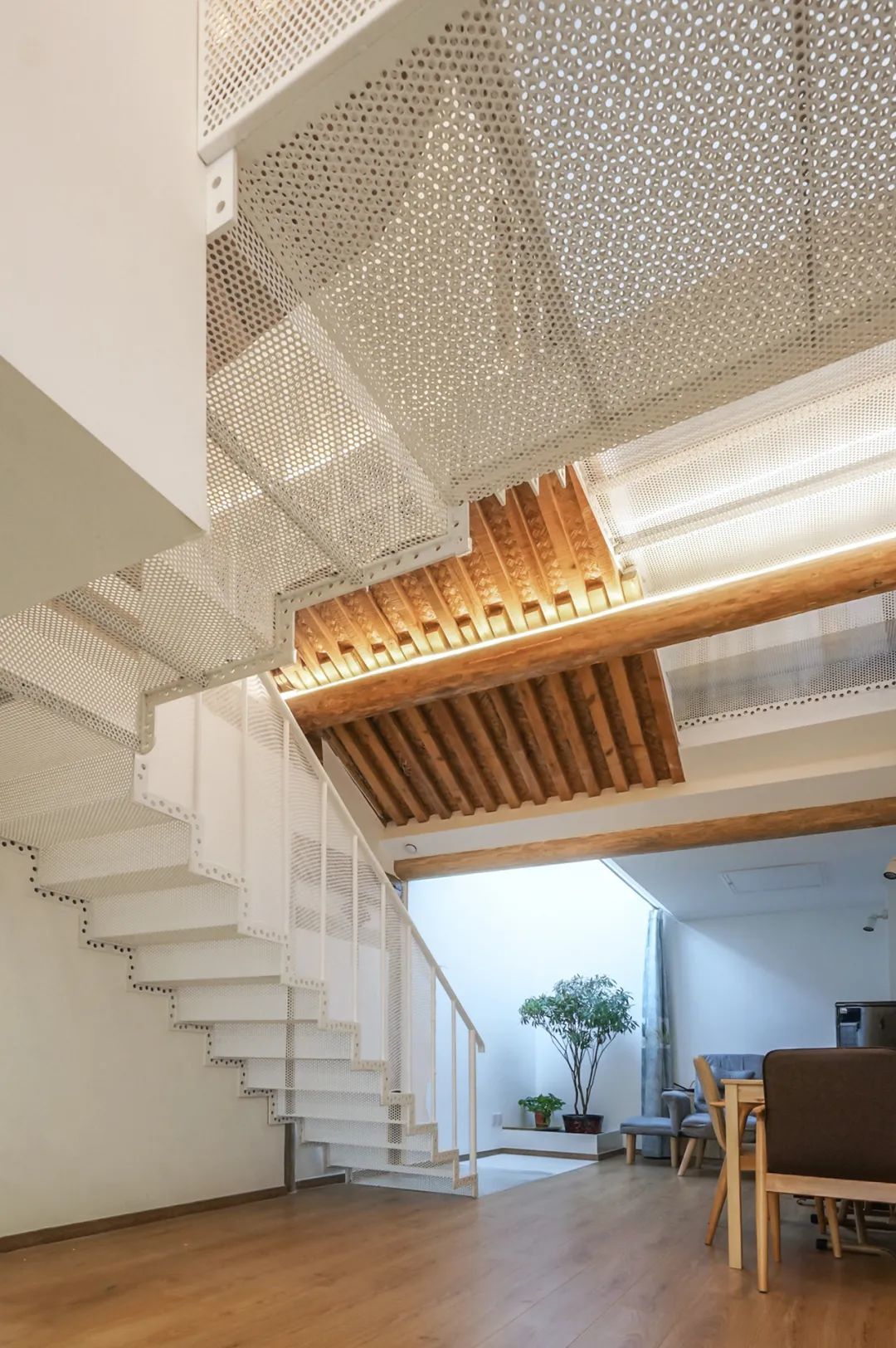 透明穿孔板打造的楼梯,串联起了房子的上下