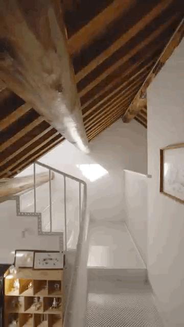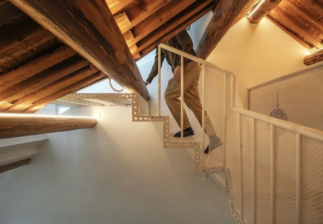 通向阁楼的台阶,已经穿过了原先的屋顶