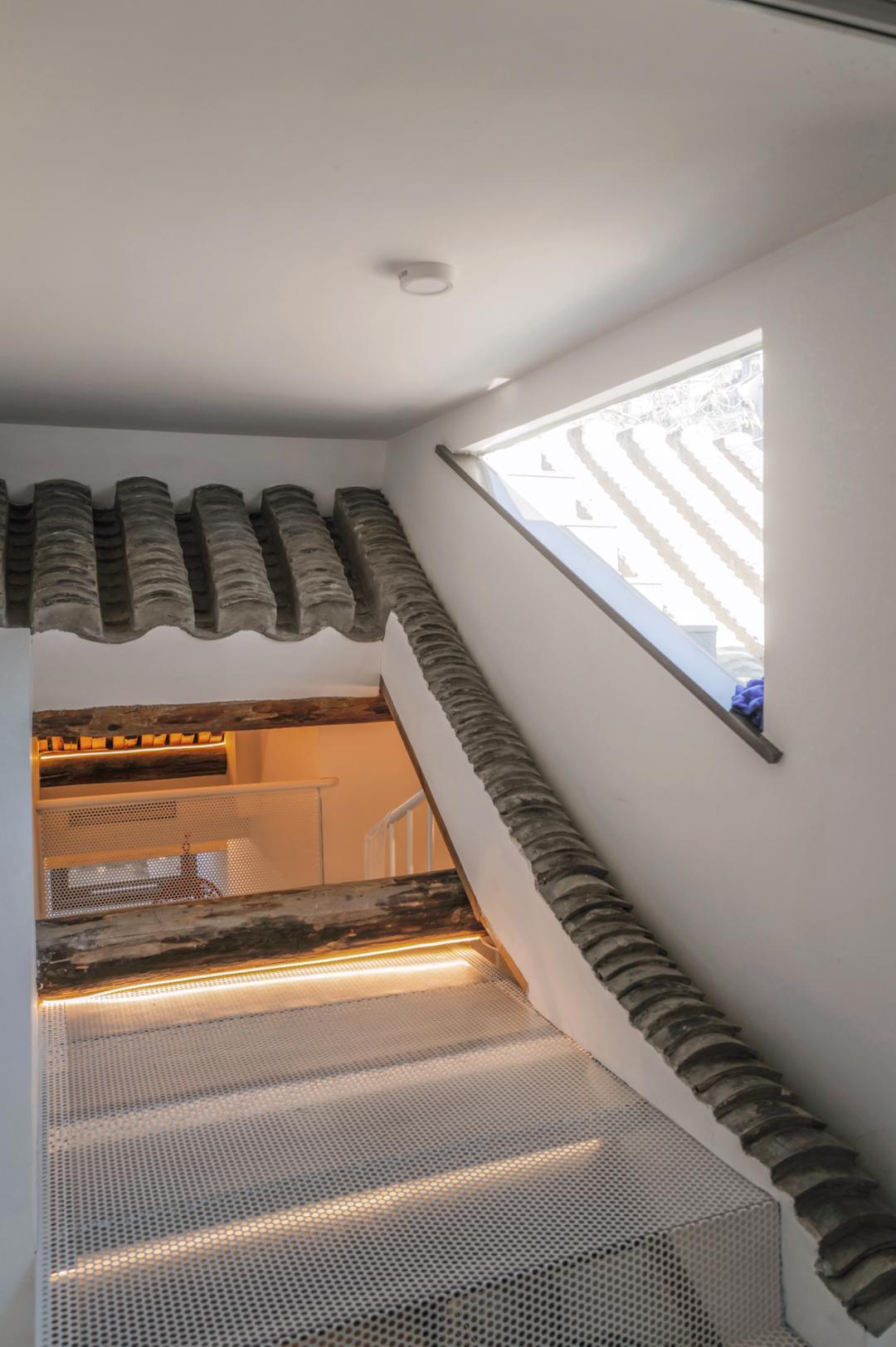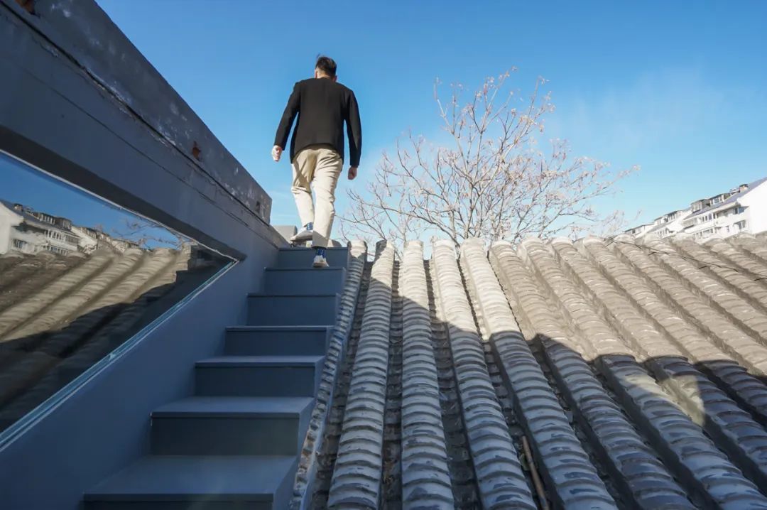所以杨圣晨索性把屋顶“捅破”,在最顶层做了一个露台,站在屋脊,能看到整个二环周围的瓦海,“就跟姜文拍的电影一样,上房揭瓦、在屋檐飞奔”。
