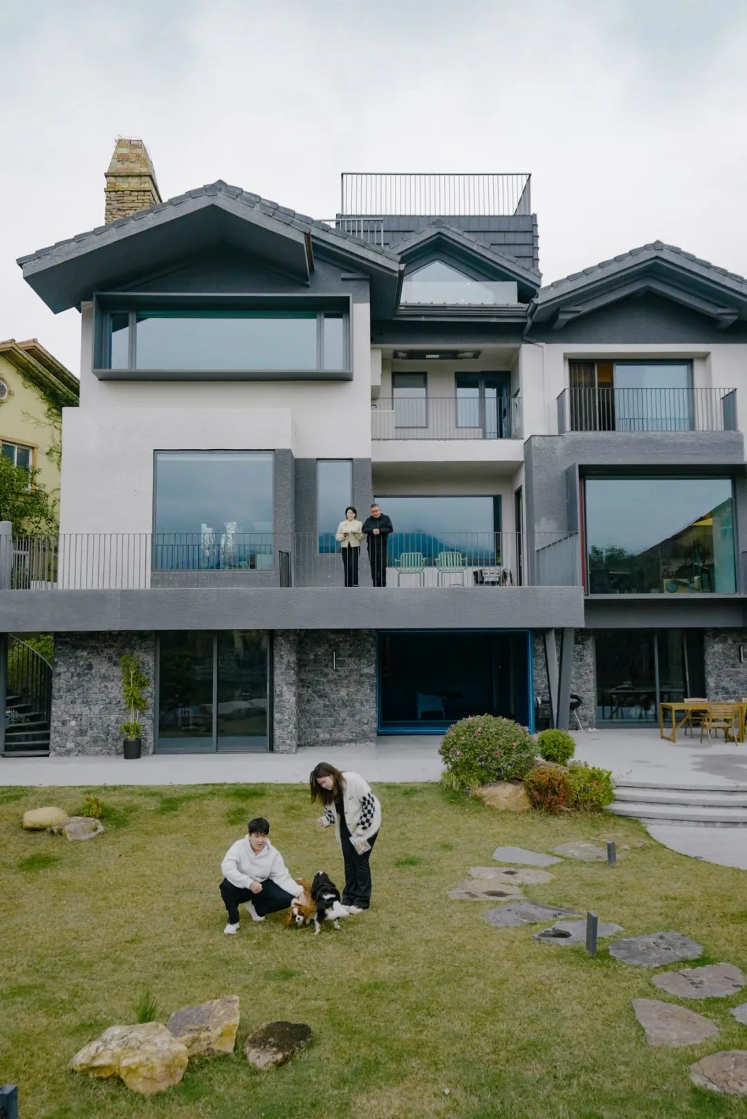 算上常来的父母,一家六口人带着两只小狗一起居住,晚上也不会关门,邻居可以随意进到花园里聊天,更像是一个社区型环境。