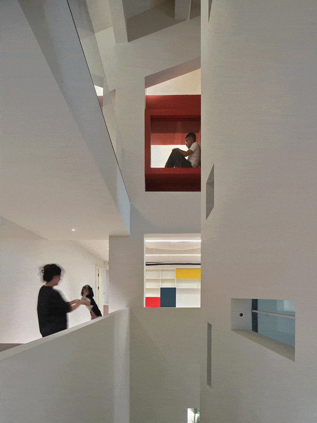 有一次杨圣晨来访,无意中抬头,发现天窗上趴了一只猫。“这种不经意的、出人意料的惊喜瞬间,是我觉得让一间宅很有生命力的原因之一。”