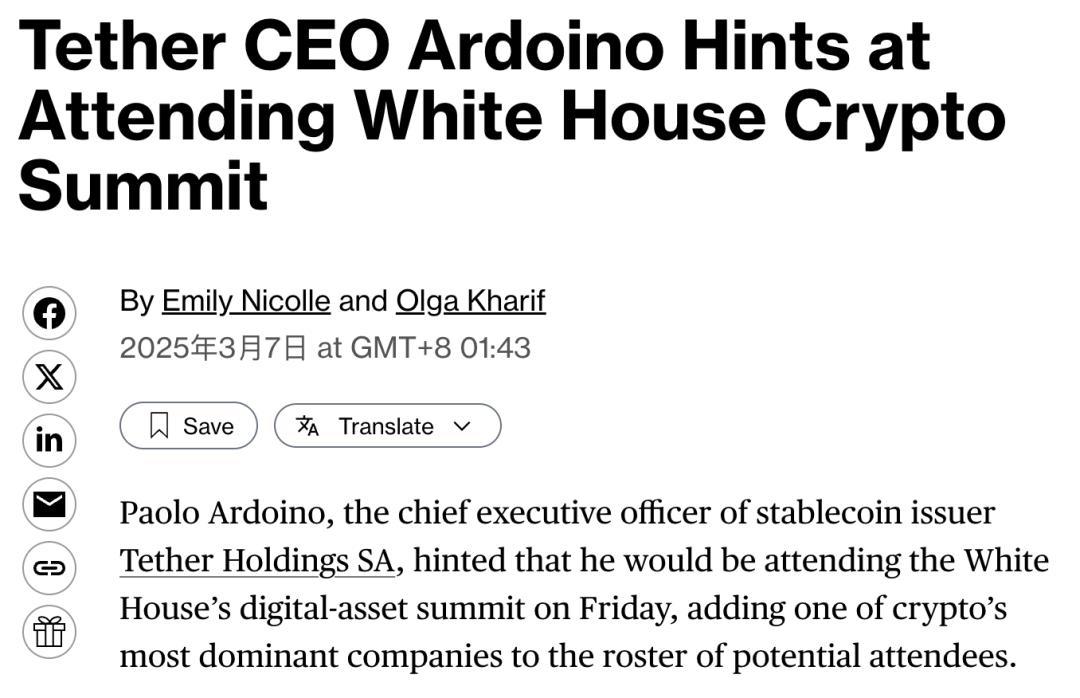 泓君:但是USDT现在是美元稳定币,买的是美国国债。随着它的规模继续扩大,这意味着它买的美国国债的规模继续扩大,现在来看是利好美国利益的,所以现在它也没有受到美国太多的阻碍,也被邀请去白宫参加会议了。