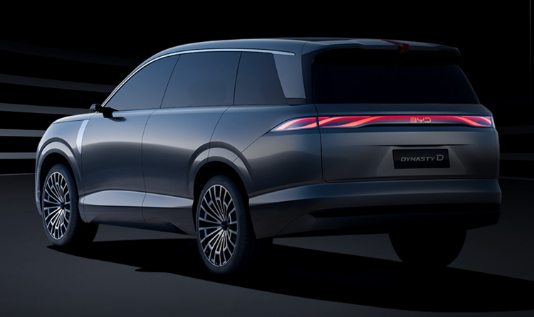 比亚迪汲取了中国传统元素,采用了全新设计的立体式飞檐龙须设计,基于宫殿中的飞檐元素打造,极具中国风,当然也和王朝汽车的定位相契合。除此之外比亚迪Dynasty-D将会采用长度达2.4米的一体成型贯穿灯,为行业最长,也充分彰显了整车的威严。同时整车也采用了中国传统的“水墨”元素,将侧裙板贯穿全车,同时Dynasty-D也采用了23英寸的轮毂,彰显整车的自信。同时Dynasty-D还全球首创3D立体中国结尾灯,勾勒独属东方美学的轮廓。