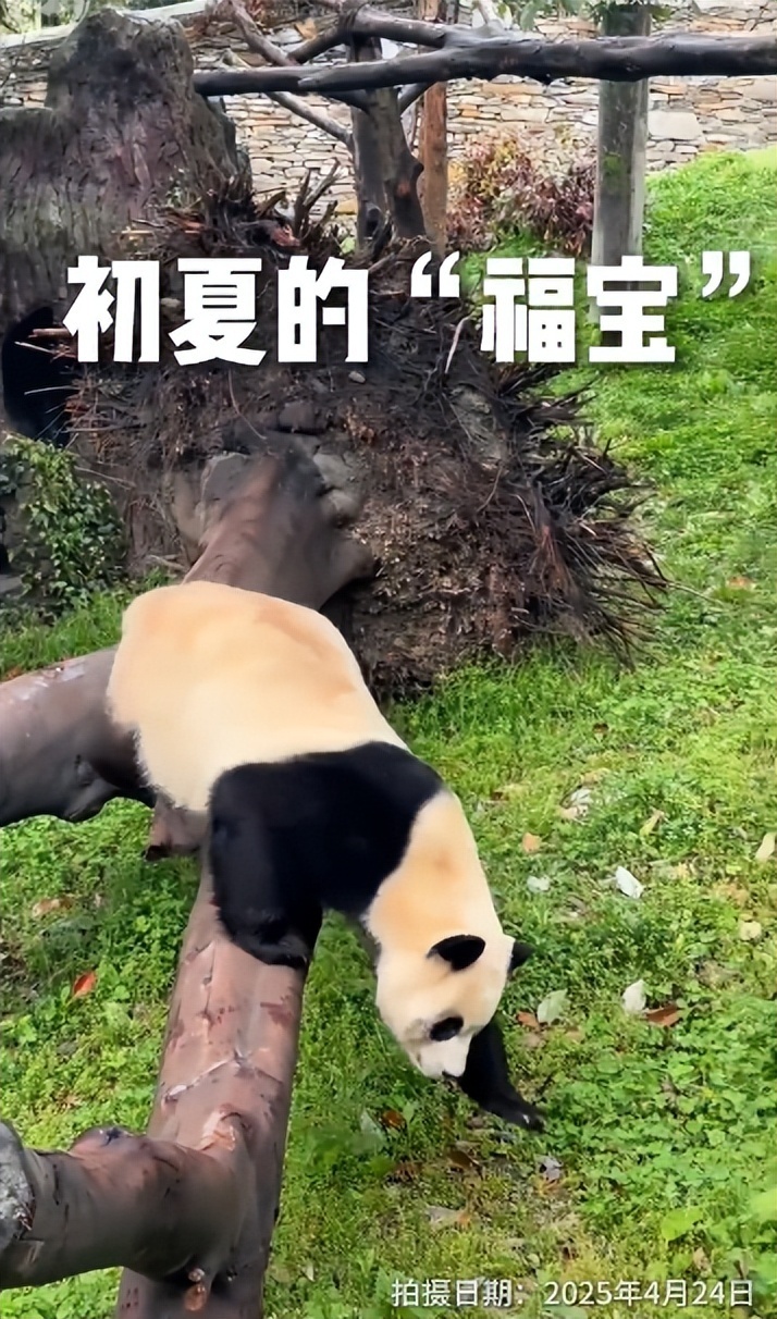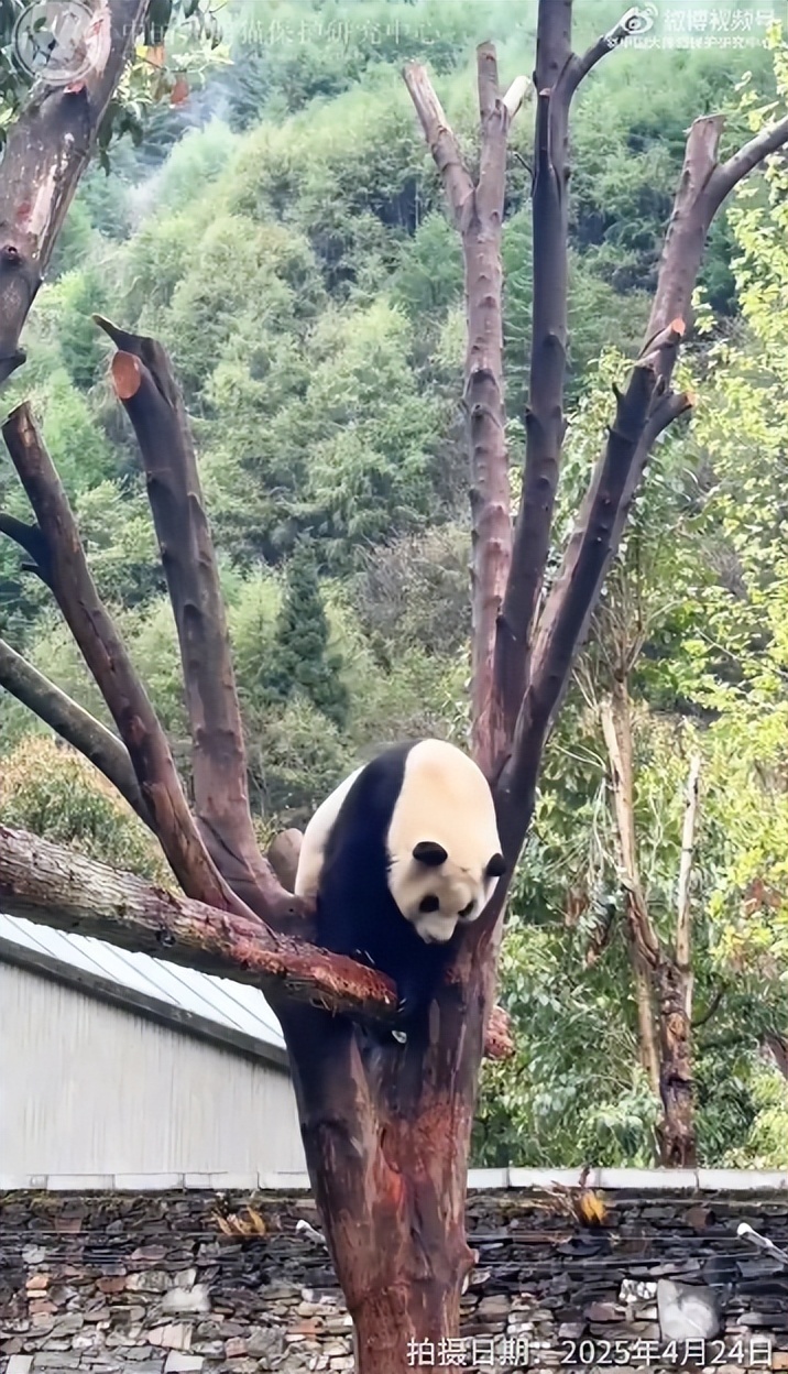 视频中,“福宝”爬树的动作十分灵活,状态不错。