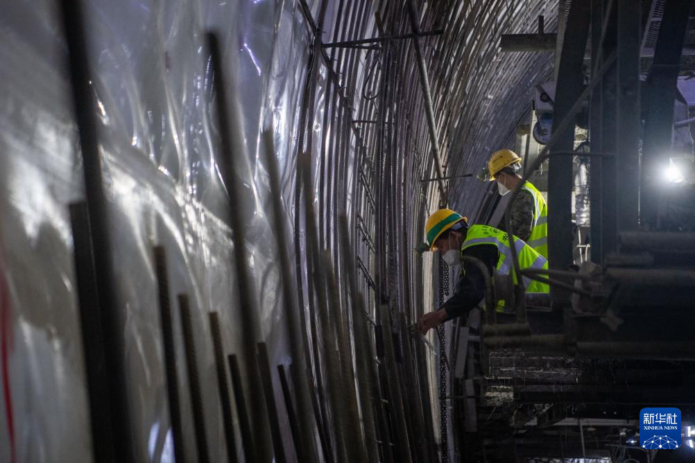 4月24日,工作人员在渝湘复线高速公路彭水隧道进行隧道贯通后的收尾工作。