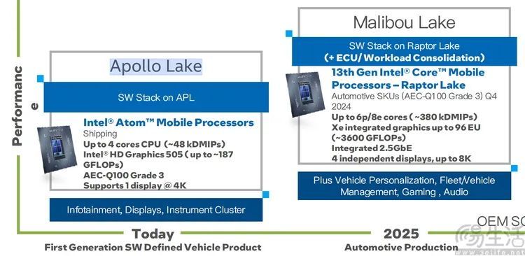 但是事情就这么简单吗?就在不久前我们三易生活从第三方获得了英特尔原本的车载平台路线图,其中就包括原定“接班”Malibou Lake的“下一代”车载计算平台诸多产品信息。