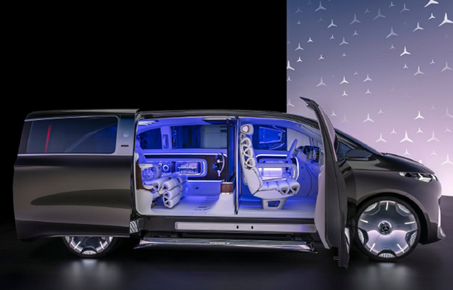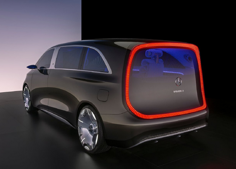 在上海车展上,奔驰Vision V概念车首次亮相,其独特的外观设计和内饰布局令人大开眼界。这款车被官方定义为豪华优雅的多功能车,旨在超越客户的最高期望,展示奔驰在豪华MPV领域的创新思维。车头的设计与量产版车型相近,太空时代风格的座椅和大量白色元素搭配梅赛德斯超级屏幕,创造出未来感十足的驾驶舱环境。同时,普通的方向盘和油门刹车踏板表明,这款车并非完全自动驾驶的概念车。