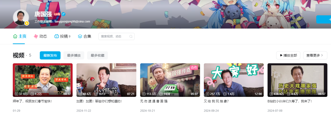 2024年7月,唐国强在B站开号。