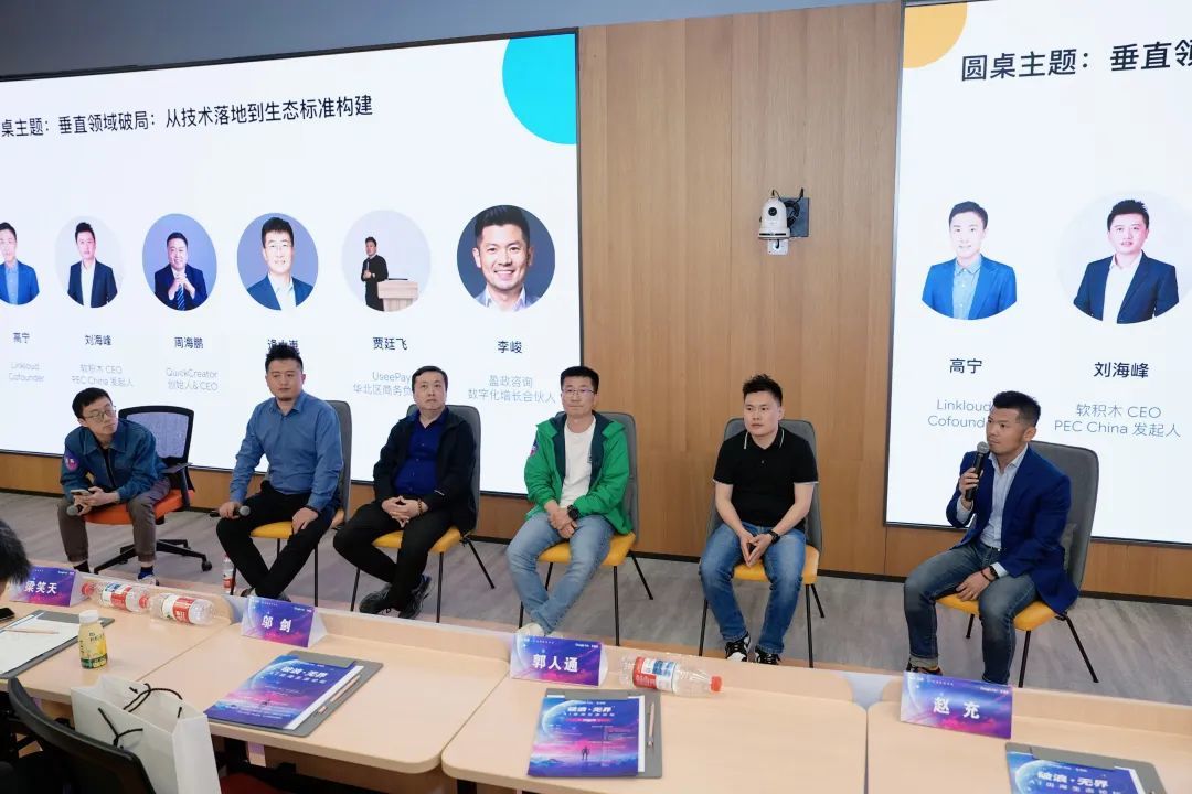左起:LinkLoud创始人 高宁、软积木创始人 刘海峰、QuickCreator CEO 周海鹏、ChatExcel CEO 逄大巍、UseePay 华北区商务负责人 贾廷飞、盈政咨询合伙人 李峻
