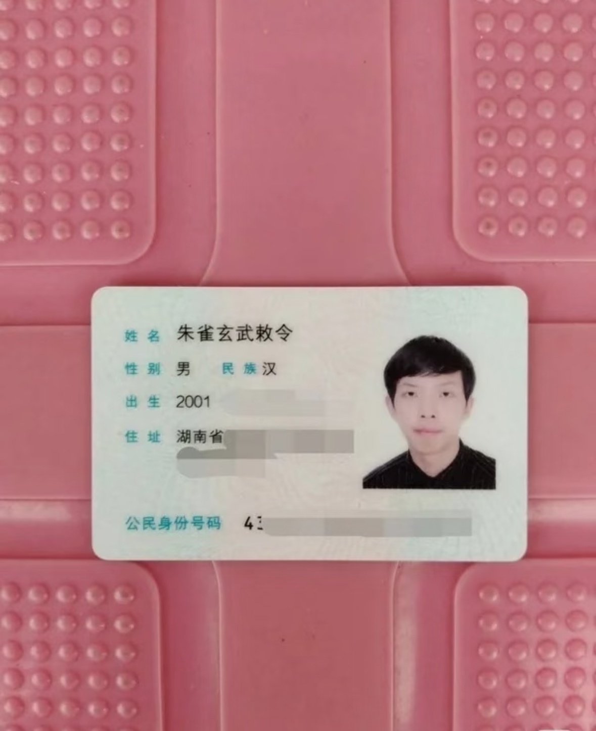 朱先生在社交平台晒出的身份证显示,其现用名朱雀玄武敕令,2001年出生,湖南人。另一份姓名变更申请书显示,为避免使人产生与古代四大神兽中朱雀玄武的误解,而且原名敕令念起来比较绕口,故申请改名,随母亲姓周。