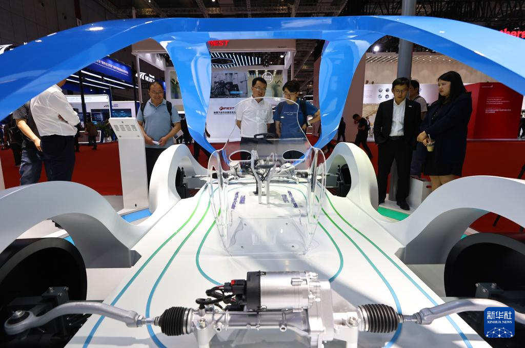 4月25日,观众参观一款线控转向系统模型。