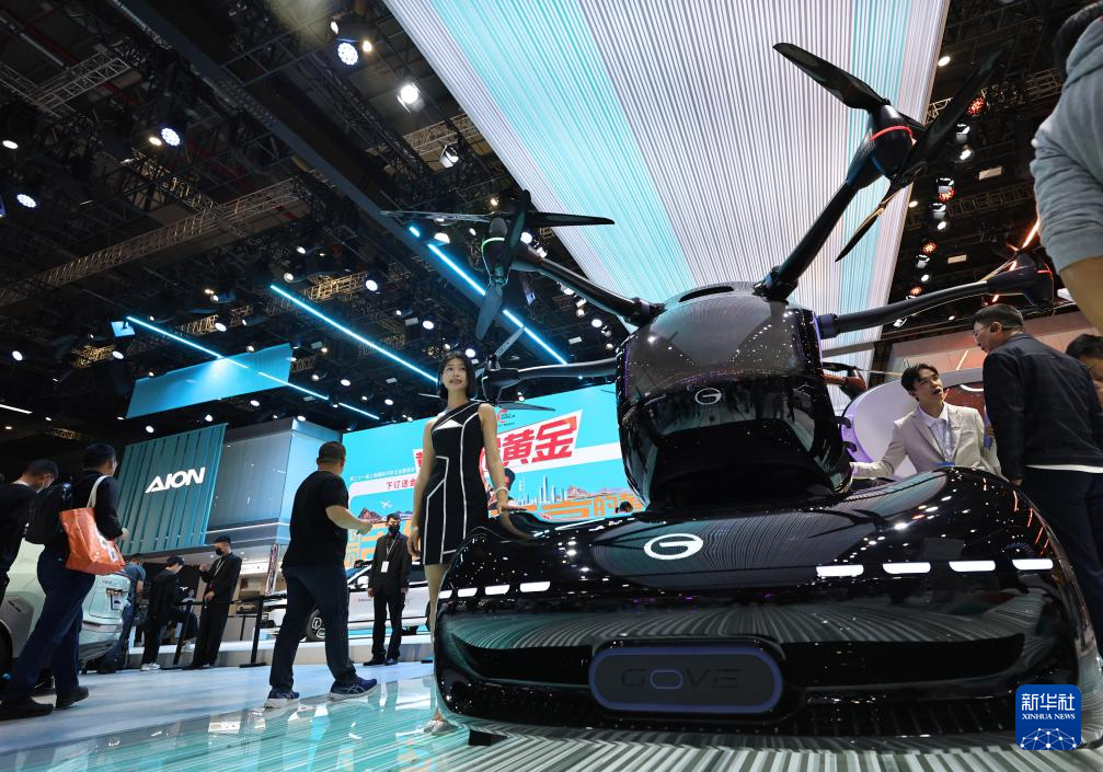 4月25日拍摄的广汽传祺品牌展出的一款飞行汽车。