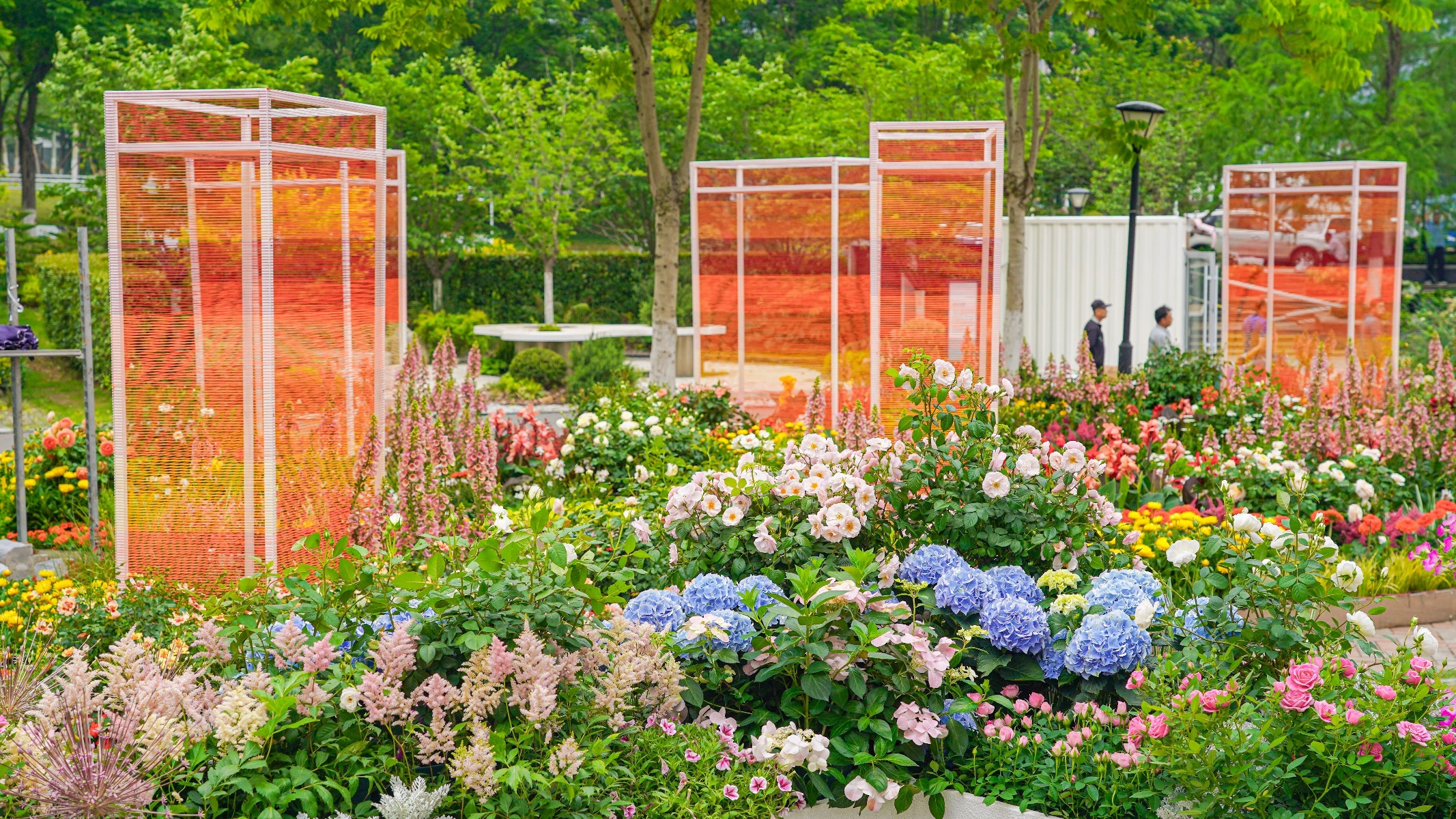 为此,他们在展园中充分运用了樱花、月季、绣球等丰富的花卉,并运用睡莲、鸢尾等水生植物,向五湖四海的游客展示武汉作为湿地花城的独特魅力。