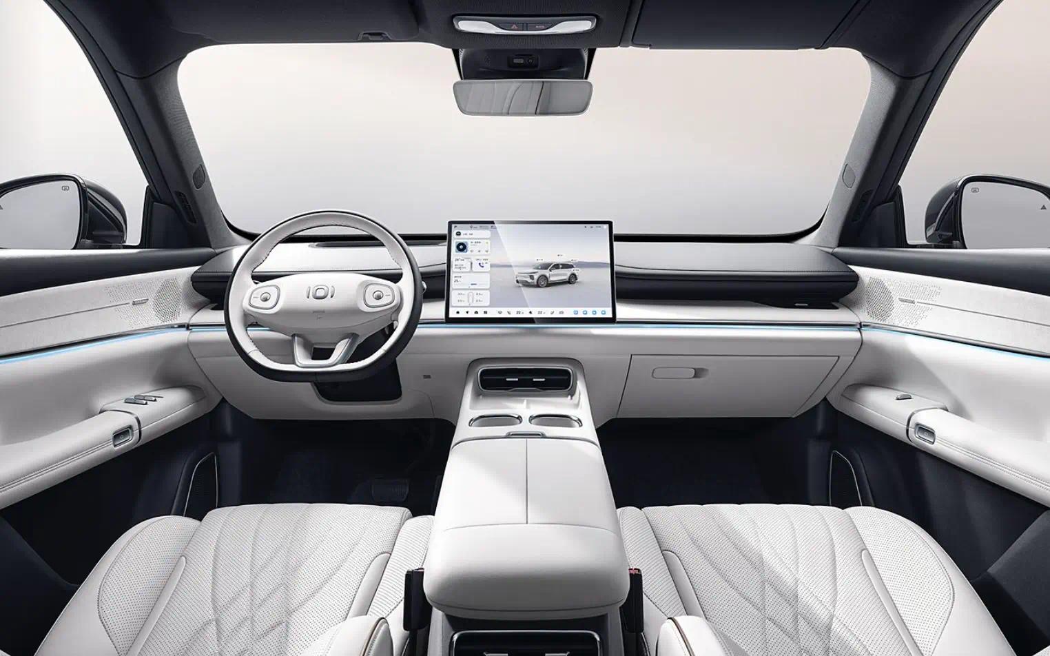 车内采用全软包和环保水性 PU 材质,质感出色。副驾驶席的 “零重力” 座椅,支持 8 点按摩、通风、加热、记忆等功能,靠背最大调节角度为 150 度,腿托最大长度为 320mm,搭配 12.8 英寸娱乐屏,极大提升了副驾的乘坐舒适性。此外,新车还提供霞光橙、玄夜黑、浅云白 3 种内饰配色,满足不同消费者的审美需求。
