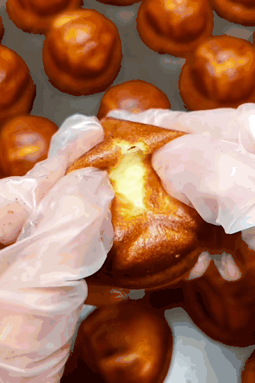 黑糖拉丝款必须现烤现卖,扯开的瞬间能拉出半米长的琥珀色糖丝;芝士爆浆款要确保咬破糯皮的刹那,咸香金黄的內馅如熔岩喷涌;更绝的是榴莲流心麻薯——选用进口热带果肉,冷冻锁鲜后包入糯米团,微波炉叮10秒,办公室瞬间弥漫着热带雨林般的浓烈香气(当然,我们还是不建议在办公室用微波炉烤任何榴莲味的食物)。