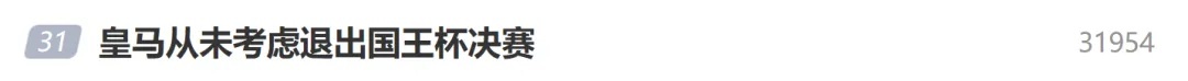 随后,#皇马从未考虑退出国王杯决赛##皇马声明#等相关词条登上微博热搜榜。
