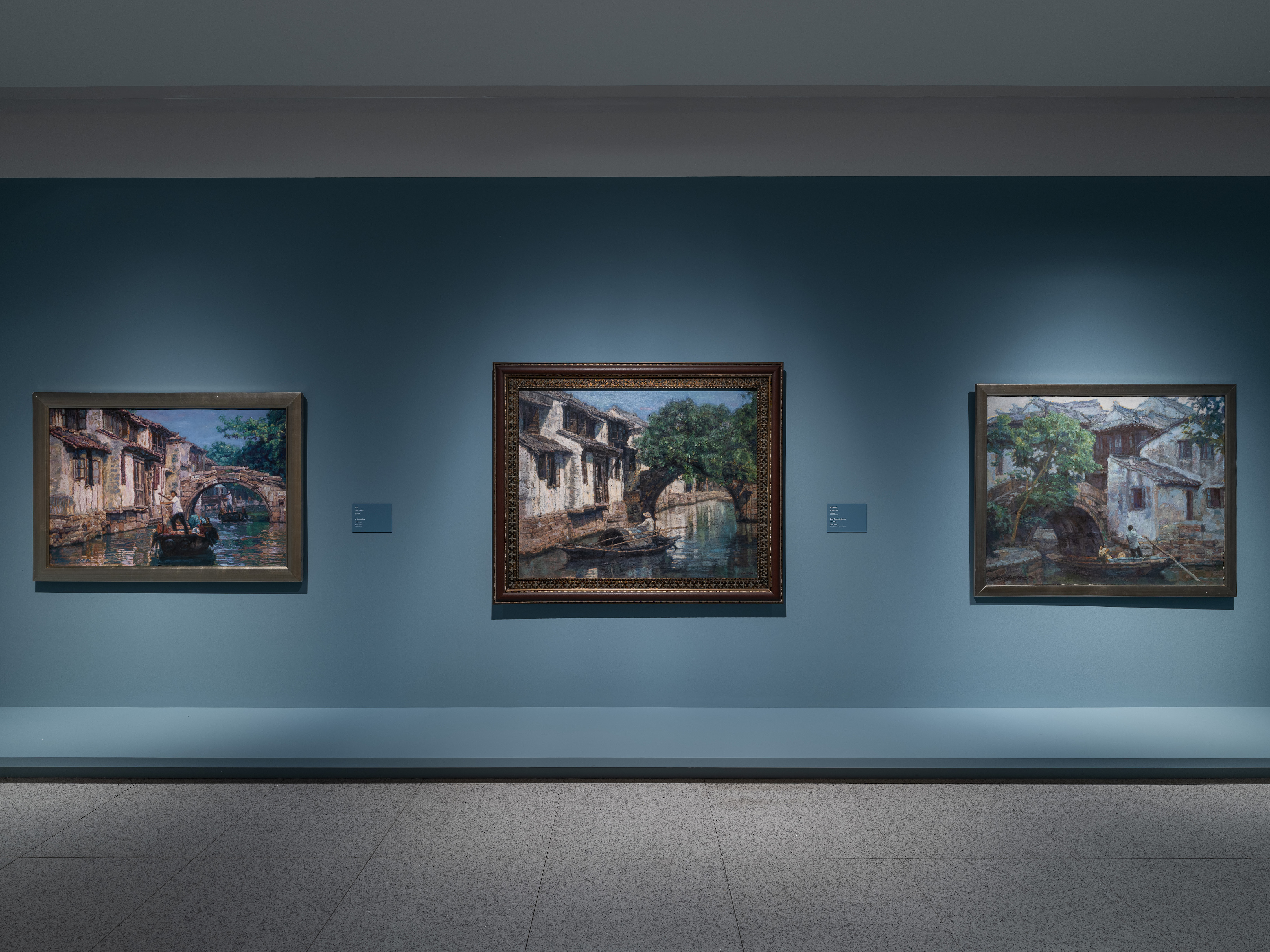 本板块呈现了包括《苏州的黄昏》《周庄》等经典油画在内的十余幅水乡主题作品。它们体现了中国传统艺术的意境和气韵,汲取了中西文化的艺术精髓,获得中西方艺术界的高度评价,在全球化语境中更具独特价值,成为中外文化艺术交流的杰出典范。「水乡」主题创作后来也贯穿了陈逸飞整个职业生涯,体现出他对江南文化的眷恋。