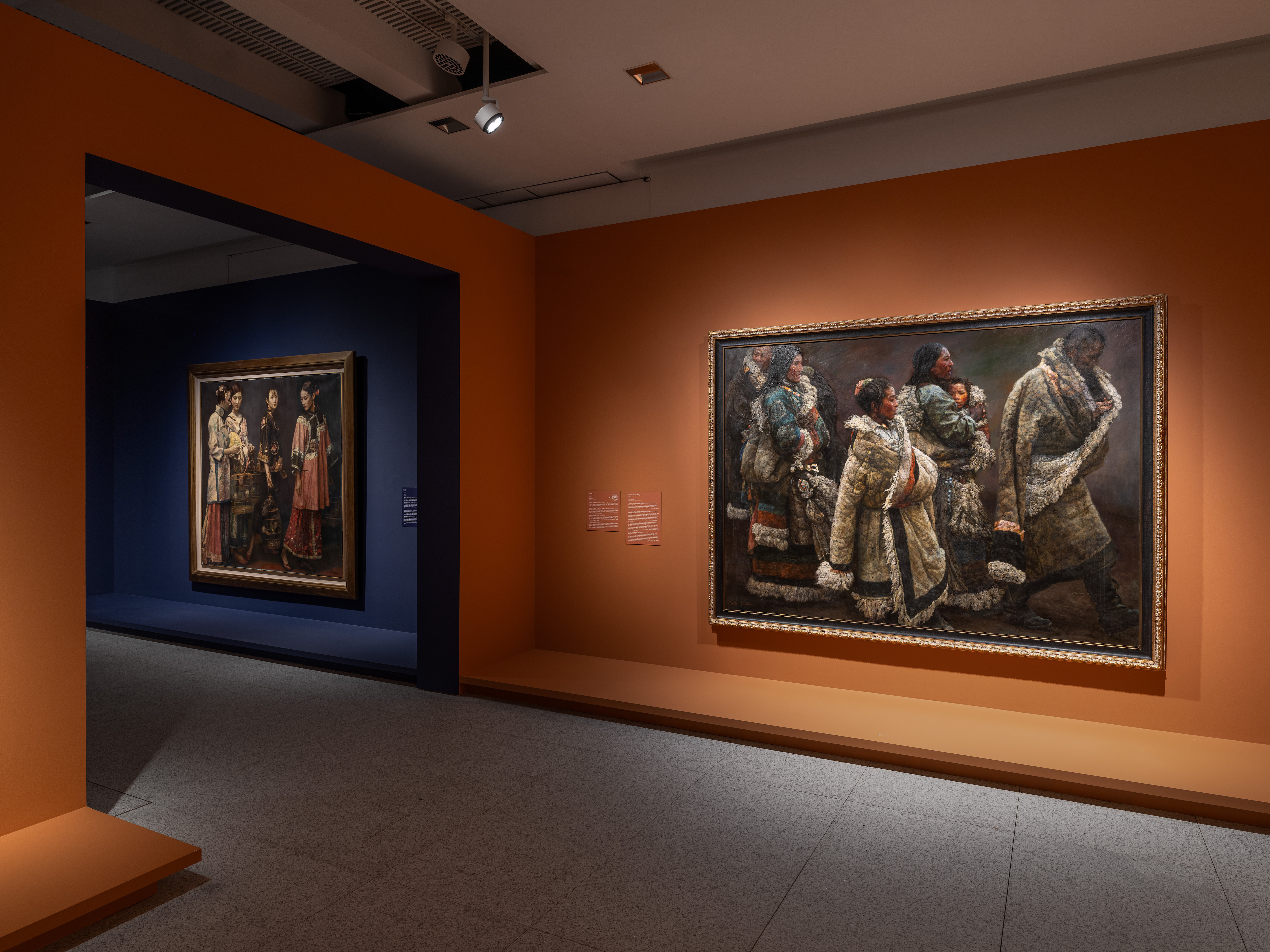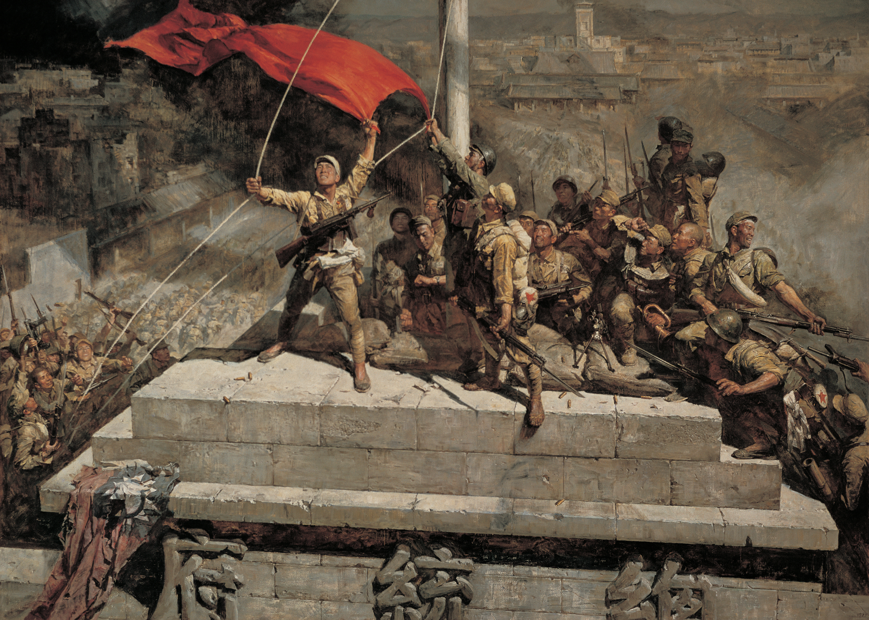 《占领总统府》以纪念碑般的构图定格历史性时刻,是新中国成立以来最优秀的主题性艺术作品之一,奠定了陈逸飞在中国美术史上的历史地位。本次展览中,中国人民革命军事博物馆特别提供了《占领总统府》复刻作品。这也是《占领总统府》史上首次以这种特殊的形式外借展出,作为展览中唯一一件复刻品,意义非凡。这些红色主题的经典之作体现出陈逸飞独特的艺术风格,兼具宏大敍事的创作角度与浪漫主义的特点,从民族精神的挖掘到时代精神的体现都有所创新和开拓,不仅为中国红色文化的创新发展注入了新的活力,也成为当下年轻人重新了解红色文化、理解历史的重要视觉记忆。